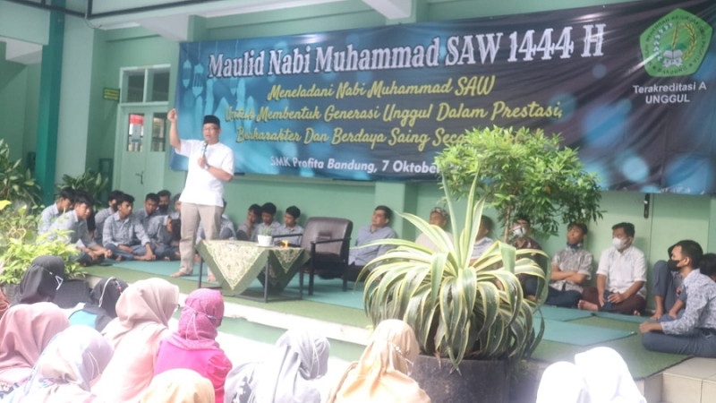Pada hari Jum’at, 7 Oktober 2022/11 Rabiul Awal 1444H bertempat di kampus SMK Profita Bandung dilaksanakan kegiatan Peringatan Maulid Nabi Muhammad SAW dengan tema :”Meneladani Nabi Muhammad SAW Untuk Membentuk generasi Unggul Dalam Prestasi, Berkarakter Dan Berdaya Saing Global”.