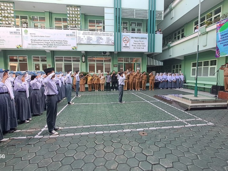 Paskibra SMK SMK Profita Bandung Sukses Kibarkan Bendera Merah Putih