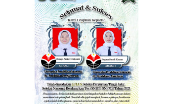 Assalamualaikum Warahmatullahi Wabarakatuh. Dengan segala hormat, perkenankan kami menyampaikan kabar gembira yang membanggakan dari putra-putri terbaik SMK Profita Bandung. Dengan penuh rasa syukur dan bangga, kami umumkan prestasi gemilang dua siswi kita yang telah berhasil diterima di perguruan tinggi negeri melalui jalur SNBT 2025: 1. Bunga Aulia Febriyanti...
