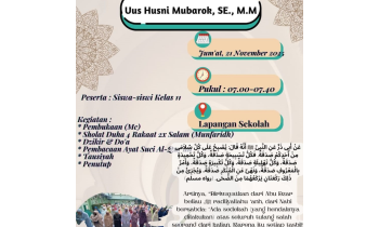 1. PembukaanGambar: MC oleh Shafa Naa’ilah 11 AK.3 dan Rahma Hanifah 10 AK.22. Shalat DhuhaGambar: Pelaksanaan Shalat DhuhaGambar: Pelaksanaan Shalat Dhuha3. Doa, Dzikir dan Membaca al-Qur’anGambar: Dzikir, Doa dan Membaca al-Qur’an dipimpin oleh Bapak Uus Husni Mubarok, SE., M.M.4. TausiyahGambar:...